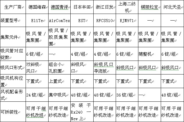 表2—16 国内外几种紧密纺装置的主要技术特征