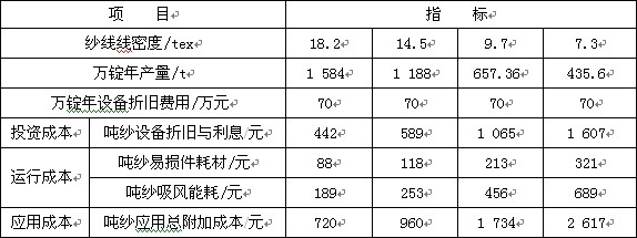 表6—2 国产吸风管套集聚圈式紧密纺技术应用附加成本估算