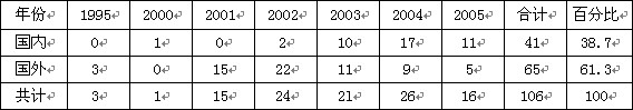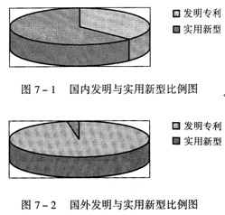 ①从申请量角度看,国外专利申请总量不及国内专利申请总量,约为国内专利申请总量的61%;但国外专利申请基本是发明专利,占其申请总量的97.5%;而国内相反,发明专利只占其申请总量的 37.3%(图7—1、图7—2)。但可喜的是,2005年,国内申请人申请的发明专利大幅超过实用新型专利。
