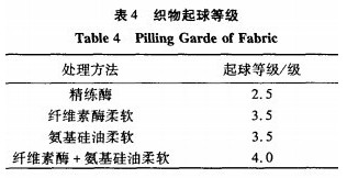 通过两者的配合整理,一方面,纤维素酶整理去除了纤维表面的微原纤维;另一方面,通过氨基硅油整理使织物表面平滑柔软。因此,采用纤维素酶配合氨基硅油整理后织物的抗起毛起球性比纤维素酶整理和氨基硅油整理都好。
