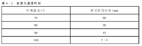 根据生产实践,BF—7658酶退浆时,温度与所需时间的关系如表4-2所示。