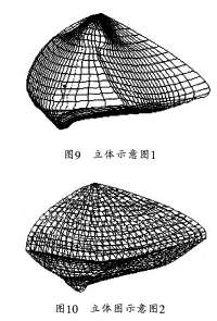 将制作好的曲面通过软件缝合.生成封闭曲面:再使用填充实体命令生成实体。然后用软件测量命令计算实体模型的体积。图9是用红P—BN、金黄P一2RN、蓝P—B、科华素黑四种染料构建的色空间的立体示意图。