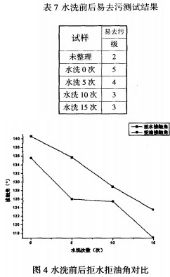 根据上述测试标准对整理前后及水洗后试样进行测试后,易去污结果如表7、拒水防油结果如图4。