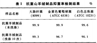 抗菌山羊绒制品经纺织工业南方科技测试中心(上海)检测,结果如表1所示。