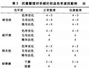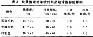 抗菌整理后羊绒制品的色牢度指标见表2,抗起球指标见表3。
