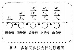 上一小节主要讨论了单段张力闭环控制方法。由于后整理设备导布系统由多轴组成,一般为5轴,因