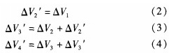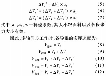 节(无前辊补偿)后,前导、后导、上导、出布的调节速度依次为△V1、△V2、△V3、△V4,为了使