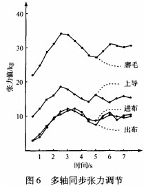 这里以ME776ASF型磨毛机为例,对磨毛作业进行过程中各段的张力情况进行分析,从图中可以看出