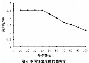 在此条件下同时测定不同铬浓度时的菌密度变化情况,经测定后,不同铬浓度时的菌密度如图4所示。