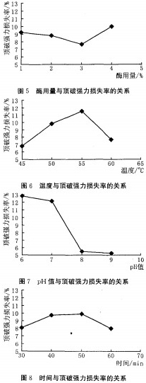 3.2各因子不同水平与顶破强力损失率之间关系