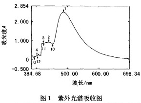 由图1可以看出,该反应产物的最大吸收波长为493nm。经多次测定,并考虑其它影响因素,选择测定波长为500llm。