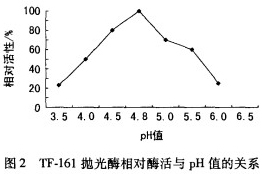 按照1.4操作测定抛光酶酶活。用冰乙酸缓冲液调节工作液的pH值,根据不同pH值下的相对酶活选择合适的工作液pH值,结果如图2。