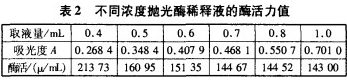 取一定量抛光酶TF一161稀释至500mL,按照1.4测定酶活,结果如表2。