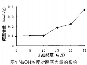 (1)在8g/LNaIO氧化条件下,与未碱预处理的氧化棉纤维相比,经NaOH浓度lOwt%以上预处理的氧化棉纤维醛基含量明显增加。