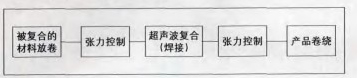 超声波复合是利用超声波对多层材料进行固结的工艺。采用超声波复合工艺时,对各层材料的熔点要求不严格,适用于熔点相差较大的材料(如非织造材料与金属膜等),该生产工艺的运行管理也较为简单。超声波焊接缝合技术广泛应用干口罩、帽子、衣服、购物袋等制品的生产。超声波复合有较高的生产速度,产品有较高的强力和较好的阻隔性能,通过改变模具的形状还能在产品上形成美观的花纹,也便于产品的回收处理;但产品的强度不如热轧粘合,对各层材料的表面清洁状态也有较高的要求。超声波复合的基本工艺流程如下: