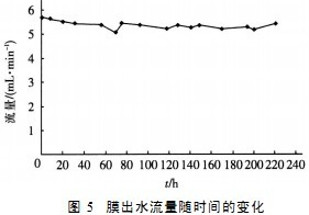 图5给出了进水染料浓度为50mg/L时,膜出水流量随时间的变化。