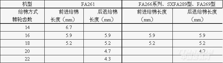 前进给棉一般落棉率掌握在5%~17%,后退给棉一般落棉率掌握在18%~25%。给棉齿数的多少决定给棉的长度。齿数多,每个长度短,相应单位长度内纤维的梳理次数增加,改善了精梳条的质量,同时影响精梳机的实际效率。