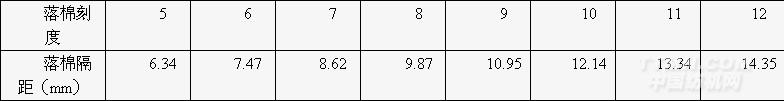 新型精梳机分离隔距共可改变6mm,最近隔距时落棉率最低,改变分离隔距1mm,可改变落棉2%~2.5%落棉刻度与落棉隔距的关系: