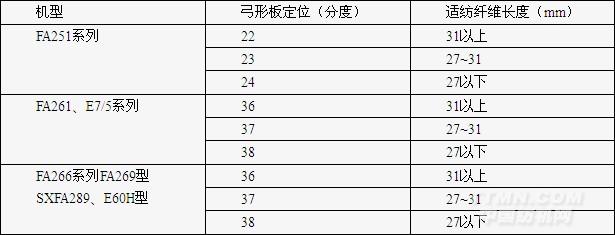国产精梳机弓形板定位与适纺纤维的长度的对应关系如下
