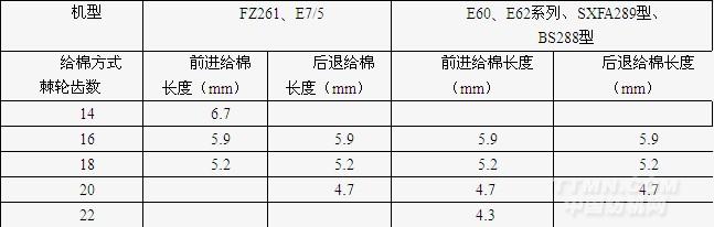 前进给棉一般落棉率掌握在5%~17%,后退给棉一般落棉率掌握在18%~25%。给棉齿数的多少决定给棉的长度。齿数多,每个长度短,相应单位长度内纤维的梳理次数增加,改善了精梳条的质量,同时影响精梳机的实际效率。