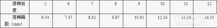 新型精梳机分离隔距共可改变6mm,最近隔距时落棉率最低,改变分离隔距1mm,可改变落棉2%~2.5%落棉刻度与落棉隔距的关系: