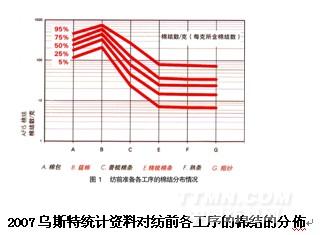 2、2007年乌斯特乌斯特公报对纺前各工序的棉结的分佈如图1所示