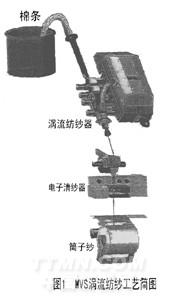 ⑶由于涡流纺纱速度高:旋转的涡流对纱的加捻要比机械式加捻效率高的多MVS851纺纱机的引出速度为400m/min ,MVS861的引出速度达到450m/min 。高速回转的涡流只作用在纤维上,与前罗拉引出纤维的功能一起形成对纤维的加捻作用。因此高速回转的涡流除了完成加捻任务外,并不影响纱线支数的高低。由于MVS纺纱体系的基础“Vortex”气流对纤维的加工,纤维受到具有声速的喷气涡流及卷取罗拉作用而形成真捻,这种特殊的加捻作用是其它纺纱机械不能取代的,高的纱线回转速度下的成纱结构比环锭纱线结构较紧密,因而结构稳定,使印染加工后的最终纺织品具有许多优点。