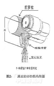 ⑸纱线的结头方法:1纺纱过程中纤维从牵伸装置进入喷嘴内部,接头动作自动即完成,这种方法与筒子纱接头一样也叫空气捻接接头法。见图2
