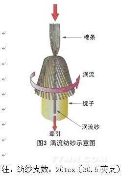 4、产品质量:涡流纺纱线质量特性中,除了纱线强力及伸长率比环锭纱低以外,其它毛羽,起球率等项质量指标匀比环锭纱好,甚至有些指标还要比紧密纱好。但生产纯棉纱质量远不如化纤纱。见表