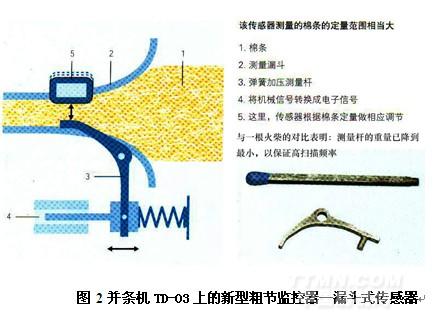 图1是特吕茨勒公司在2007幕尼黑ITMA展出的新型并条机TD-O3上的新型粗节监控器--漏斗式传感器