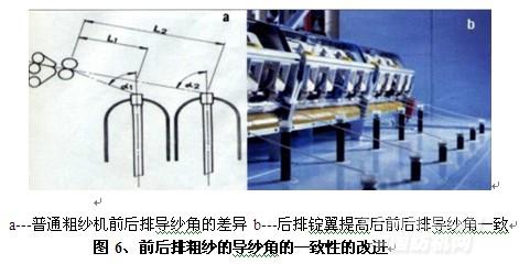 4、前后排粗纱的导纱角的一致性:(见图6)