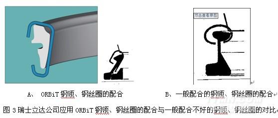 六、瑞士Bracker ORBIT 钢领钢丝圈的优点如下: 1、 由于Bracker公司同时研发及生产各类钢领钢丝圈,很注意钢领钢丝圈的配合情况,因此钢领钢丝圈的配合很好(见图3), ORBIT钢领钢丝圈接触面积加大,钢领为锥形如图3、所示。钢领钢丝圈之间接触面比普通钢领钢丝圈加大4-5倍,从而了减少钢丝圈对钢领的压强及改善了摩擦性能及散热性能。2 由于接触面积加大,热传导好,钢丝圈温度较低,因此对纤维损伤少,并使纱线稳定通过。