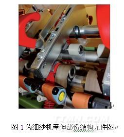 图1为细纱机牵伸部份结构元件图