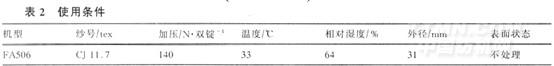度的低硬度胶辊纺纱,并非压力越重越好;可是压力也不能太小,在试验120 N/双锭时,易出现绞胶辊、冒粗纱头、牵伸不开等现象;综合考虑,采用压力为140 N/双锭为最佳压力。