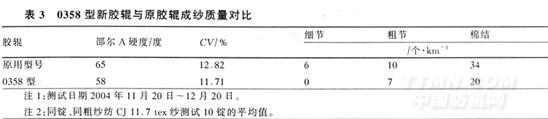 4.1 从以上试验数据可反映出,采用0358型低硬度胶辊纺纱,其各项质量指标明显提高。
