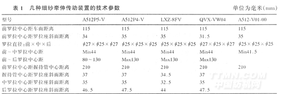 2.1 几种细纱牵伸传动装置的技术参数见表1。