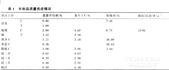3.3.2 降低精梳机速度以减少锡林梳理负荷,减轻锡林”嵌花”现象,降低结杂和纱疵;为确保精梳机运转良好,要保证锡林、顶梳梳针完好无缺,及时做好清洁工作,保证精梳棉网良好。