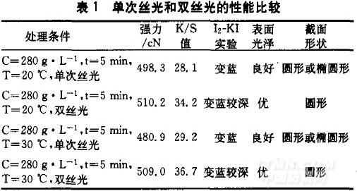 3 结论 (1)双丝光效果较好的工艺条件是.浓度为280 g/L,时间为5 min,温度20~30℃。 (2)就纱线的强力和K/S值改善而言,双丝光比单次丝光效果更好,纱线光泽更亮,手感更舒适,可使棉制品的服用性能有较大提高。