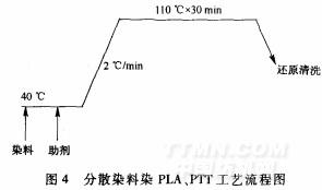 工艺处方:分散黄SE-F0.47%(O.W.f);分散蓝SE-2R0.42%(O.W.f);扩散剂NNO2g/L;采用HAc调节pH值至4—5;浴比为1:30。工艺流程如图4所示。