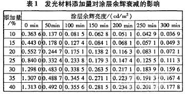 2.1发光材料添加量对涂层发光性能的影响