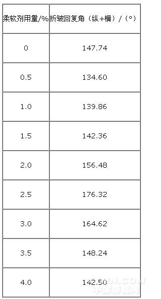 对纯棉针织物原样进行有机硅柔软整理,其折皱回复角(纵+横)测试结果如表2所示。