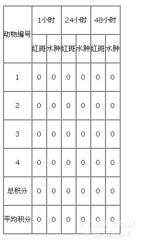 按“一次皮肤涂抹实验”方法,对四只家兔进行了皮肤刺激试验,结果如下: