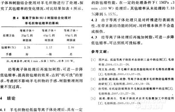 关键词:等离子体处理;羊毛织物;防毡缩;整理