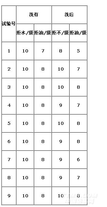 (2)织物经过拒水拒油处理,风格有一定改变,如柔软感、弯曲变形回复能力、拉伸弹性有所下降:织物的压缩弹性,尺寸稳定性和蓬松感提高,织物抵抗剪切变形、回复能力增强。