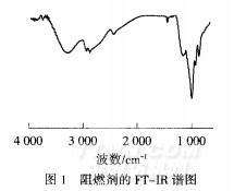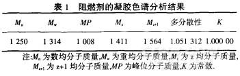 由表1可知,阻燃剂的多分散性值为1.05l312,说明阻燃剂的分子质量比较均一,为1250.
