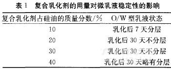 2.2复合乳化剂用量对氨基硅微乳液稳定性的影响