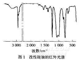 由图1可知,改性硅油中Si一0一Si结构对应的特征吸收峰为1022.34cm-1,1261.14cm-1处为si~CH3与Si—cH2中c—H的弯曲振动吸收峰,801.52om处为si—CH,结构中Si—c的弯曲振动吸收峰,1093.41cm-1是c—O—C结构的特征吸收峰,1410.81、2963.05cm-1是一cH,、一cH中饱和C—H的弯曲振动吸收峰,3362.5cm-1处为羟基,仲氨基中O—H、N—H的弯曲振动吸收峰.