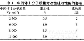 2.2.1端含氢硅油(中间体I)分子质量对改性硅油性能的影响