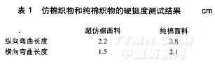 测试按ASTMD1388 2007织物硬挺性测试方法》ptionA进行,结果如表1所示。