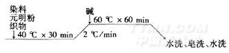 二浸二轧,装袋密封(30℃×16 h)一水洗、皂洗、水洗